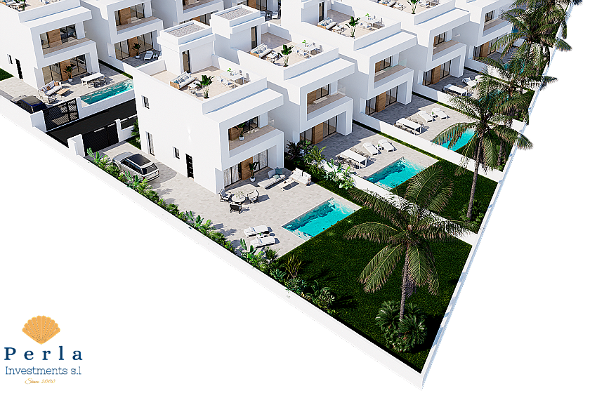 Þetta glæsilega einbýlishús eru staðsett á mjög vinsælu svæði á Costa Blanca strandlengjunni, þ.e. á milli Cabo Roig og La Zenia hverfanna þaðan sem stutt er í alla þjónustu og glæsilega verslunarmiðstöðin Zenia Boulevard í þægilegri göngufjarlægð.