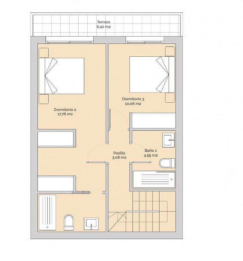 Húsið sem er með 96,77 nýtanlegum fermetrum er á tveimur hæðum með 3 svefnherbergjum, 3 baðherbergjum með hita í gólfi, stofu og fallegu eldhúsi með gæða heimilistækjum, 40,05m2 þaksvölum og einnig 95,60 m2 stór lóð sem hægt er að sóla sig í allt að 300 daga á ári, á lóðinni er einnig 12,50m2 sundlaug og bílastæði.
