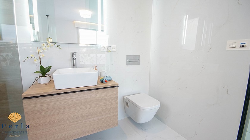 Þessi glæsileg eign er staðsett rétt við „bleika“ saltvatnið í skemmtilegu og líflegu borginni Torrevieja. Fyrir náttúru unnendur er vinsælt að labba eða hjóla meðfram hinum áður nefndu salt vötnum, sem eru í göngufæri frá þessari glæsilegu eign, heimili hinna bleiku flamenco fugla og njóta þar fjölbreyttrar og fallegrar náttúru og lífríkis.  Í 15 mínútna fjarlægð er svo hinn spennandi og alþjóðlegi miðbær Torrevieja, 5 golfvellir, 2 verslunarmiðstöðvar, frábært úrval veitingastaða, bara og kaffihúsa, vatnsrennibrautargarður sem og tvö heimsklassa sjúkrahús og mikið úrval hágæða spænskra sem og alþjóðlegra skóla.