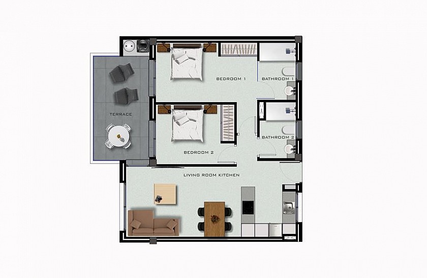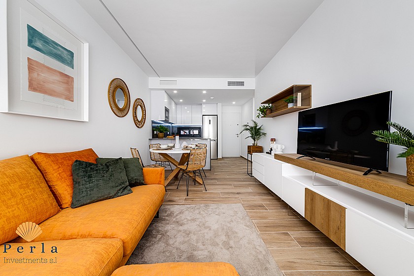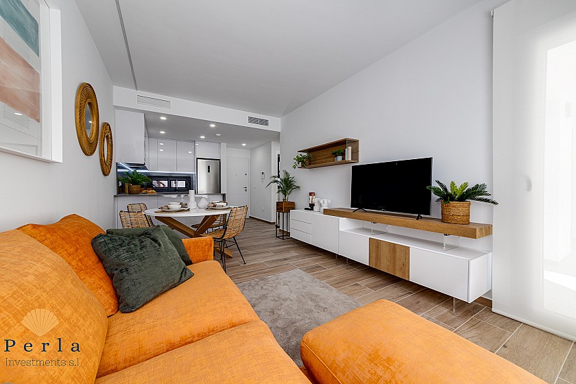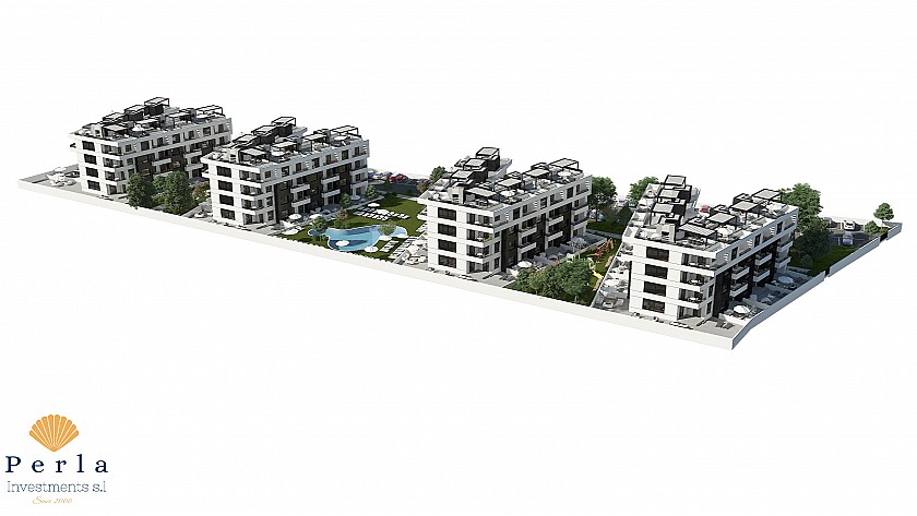 Þessari glæsilegu 2 svefnherbergja, 2 baðherbergja og 72,95m2 íbúð, fylgir jafnframt rúmgóð verönd. Hún er staðsett í einstöku hverfi, og í aflokaðri íbúðarþyrpingu þar sem hugað er að hverju smáatriði, með sameiginlegu sundlauga og garðsvæði. Í sama íbúðarkjarna eru í boði glæsilegar íbúðir með garði og íbúðir með þaksvölum og glæsilegu útsýni.
