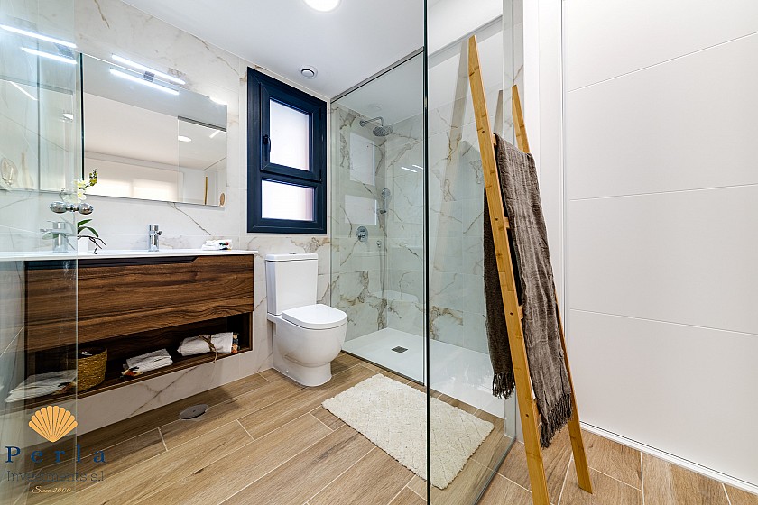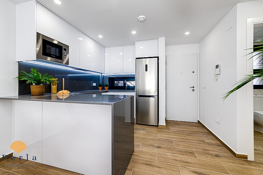 Auk þess er Zenia Boulevard verslunarmiðstöðin skammt frá, þar sem þín bíður mikið úrval verslana í yfir 80.000 m2 verslunarhúsnæði, að ógleymdir heilbrigðisþjónustu hins margrómaða Torrevieja spítala sem er í 15 mínútna ökufjarlægð að heiman. Og fyrir sólarunnendur þá ertu í einungis nokkurra mínútna ökufjarlægð frá kílómetra löngum breiðum af fín sendnum ströndum sem hafa fengið vottun Evrópusambandsins fyrir gæði sjávar og þjónustu í formi Bláa fánans.