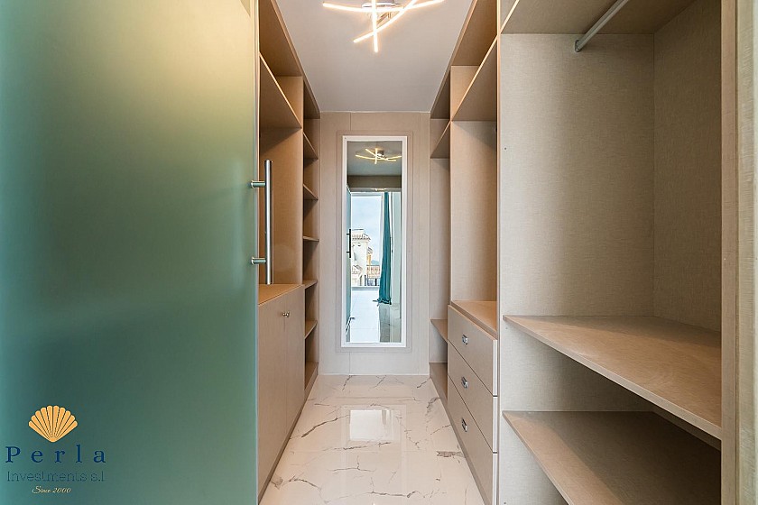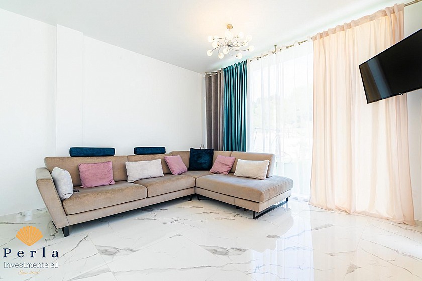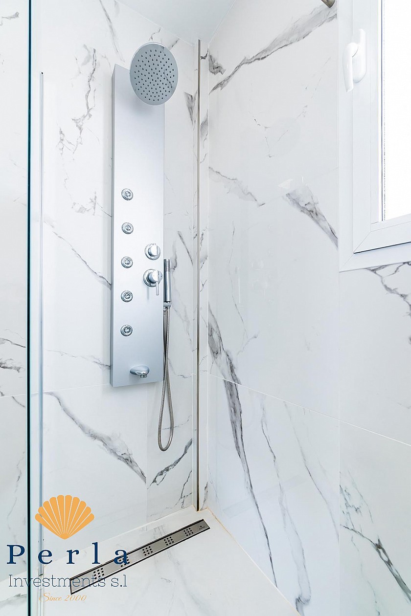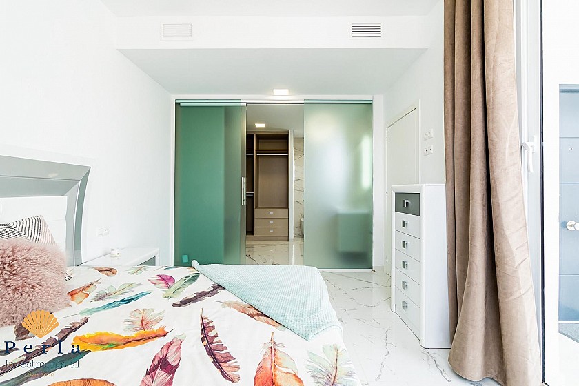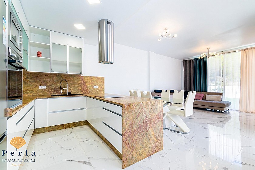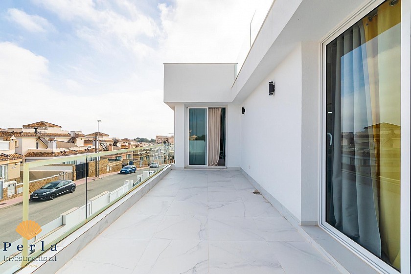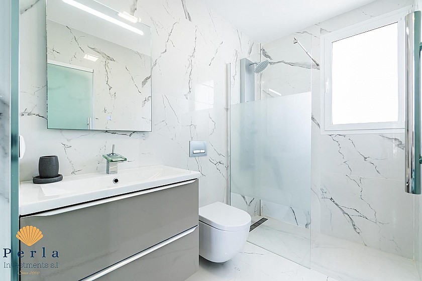 Þetta einstaka einbýlishús býður upp á þrjú glæsileg svefnherbergi, þar af tvö þeirra eru með sérbaðherbergi og fataherbergi. Björt og rúmgóð stofa með opnu eldhúsi sem er búið hágæða heimilistækjum. Innbyggð loftkæling fylgir með fyrir hámarks þægindi allt árið um kring.